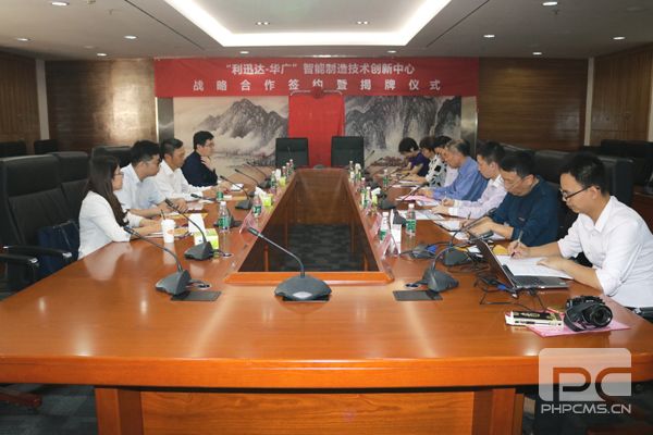 本网讯(记者 杨剑)为深化产教融合,加强应用技术研究和人才培养,12月4日下午,“利迅达-华广”智能制造技术创新中心合作签约暨揭牌仪式在行政楼201举行。广东利迅达机器人系统股份有限公司总经理霍锦添、副总经理胡尕磊,企业相关部门负责人,我校常务副校长曾志新、人事处处长杨兆禧,学科与科技处、机械工程学院和工程研究院相关负责人及教师代表参加了签约暨挂牌仪式。