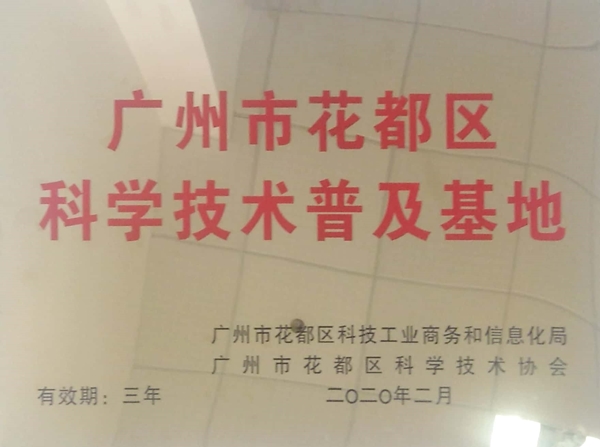 “广州市花都区科学技术普及基地”匾牌(周继香 摄)