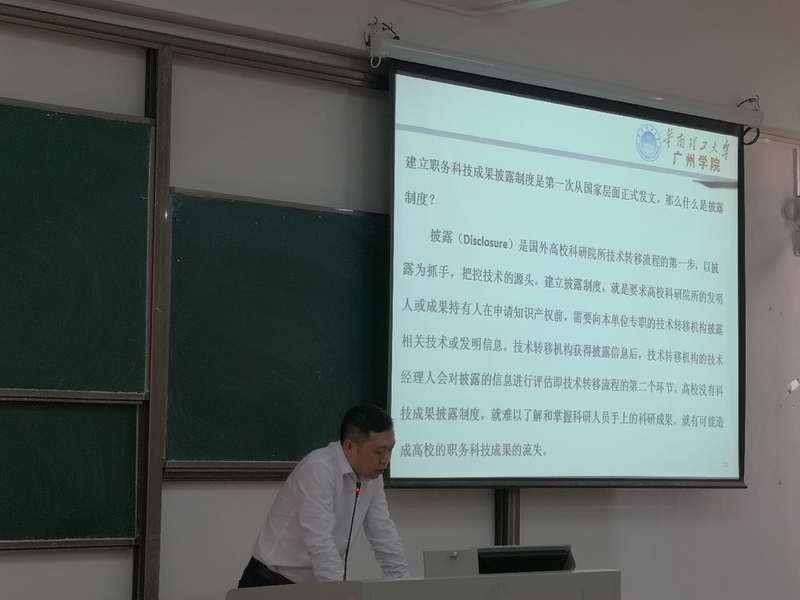 学科与科技处胡海介绍职务科技成果披露制度(朱佳辰 摄)