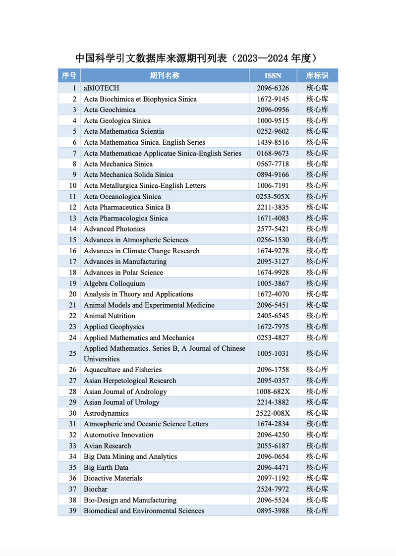 中国科学引文数据库(CSCD)来源期刊 (2023-2024年度)